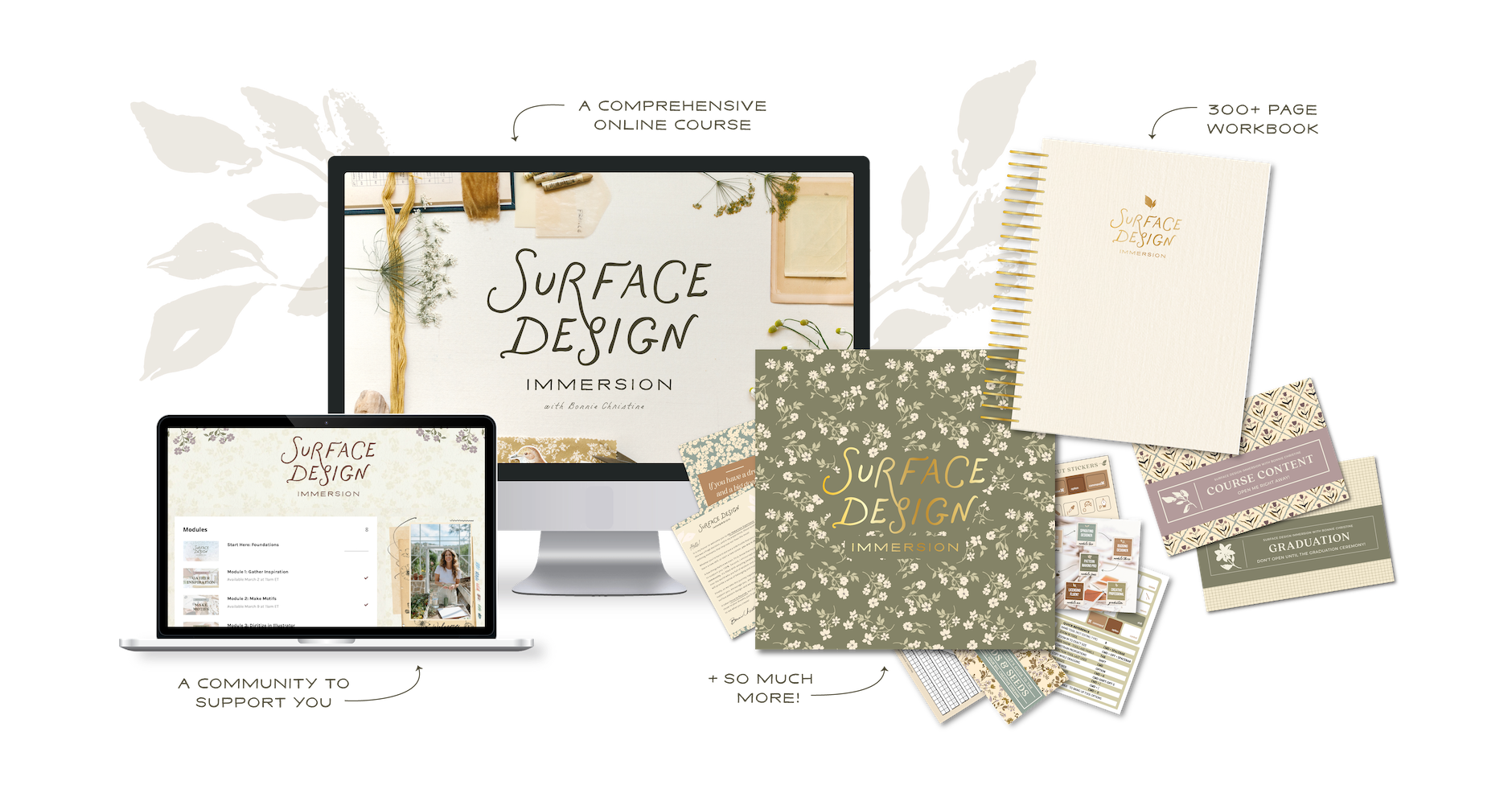 Surface Design Immersion is a beloved 8-week online course on surface pattern design, guided by Bonnie Christine. Through step-by-step lessons, you’ll learn how to create professional patterns, master Adobe Illustrator, build a portfolio, and learn the industry of art licensing.